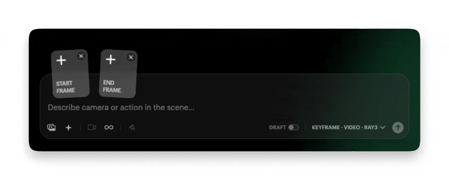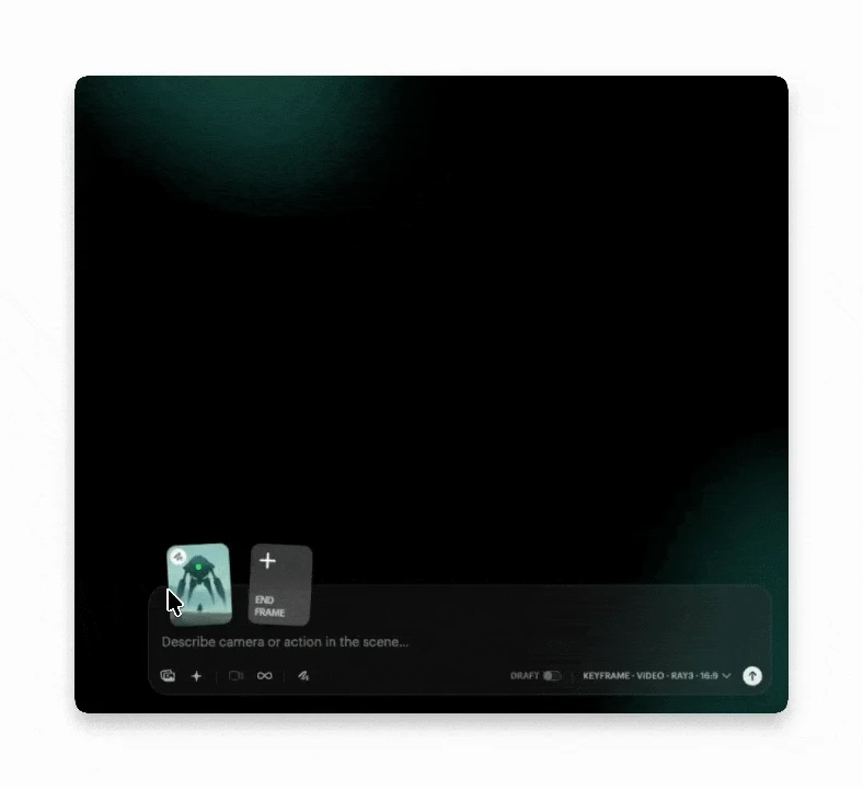 In your settings panel make sure you have Ray3 selected as your working model and that you're in Keyframe mode and drag-and-drop (or import) an image from your computer directly into the composer window.