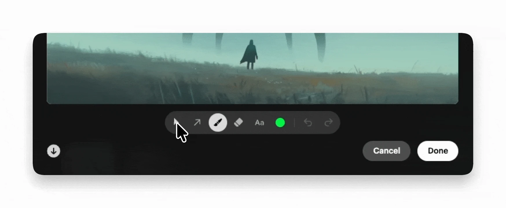 By default you'll start with the paintbrush to scribble your own arrows and mark-ups.